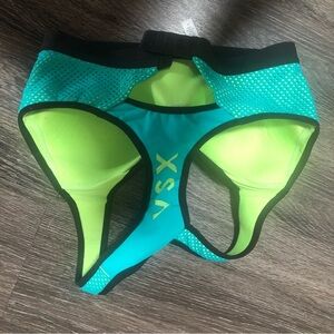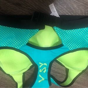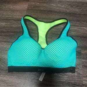 VSX Sport Victoria's Secret Teal Neon Yellow Dot Mesh Racerback Sports Bra 32C
