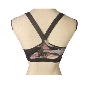Victoria Sport Bra, floral pattern, slight padding, adjustable straps and signature logo