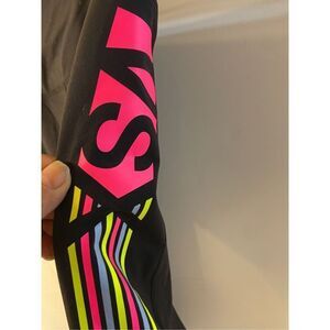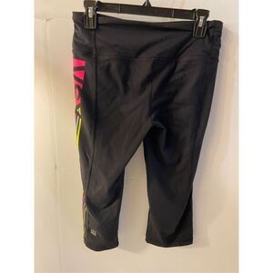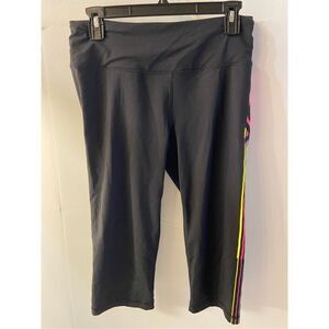 VSX Victoria Secret sport active pants capri medium. measures 28" waist, 16" inseam. 77 polyester. black with neon stripes.