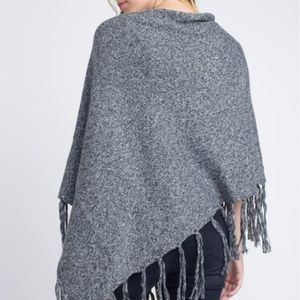 This poncho features a V-Shape and Fringes on the bottom. It also has buttons along the sides.