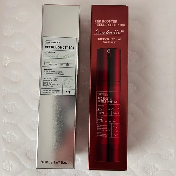Enhance your skincare routine with the Cica Redlee Shot 100 and Red Booster Reedle Shot 100. Cica Reedle helps refine rough skin bringing you a smoother appearance. The red booster is designed to rejuvenate and revitalize your skin, offering a powerful solution for a radiant complexion.
