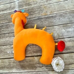 Vtech. Tummy Time pillow. Giraffe. 16”. Excellent condition. Pillow has multiple patterns and textures, colors for stimulation. Includes a squeaker provides sound when squeezed. Surface is washable. No attachments.