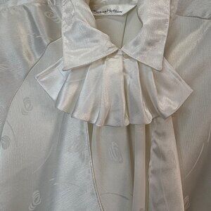VTF Susan Hutton Ivory Satin Blouse Ruffled Collar Victorian Secretary Jacquard