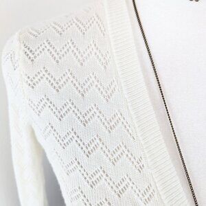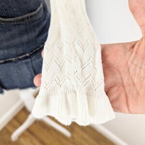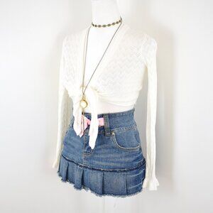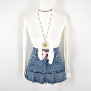 VTG 00s Y2K Candie's White Knit Ruffle Long Sleeve Cropped Tie-Up Shrug Sz XS