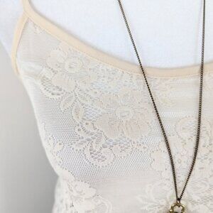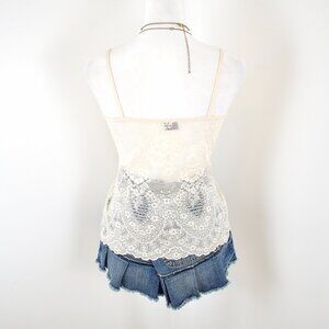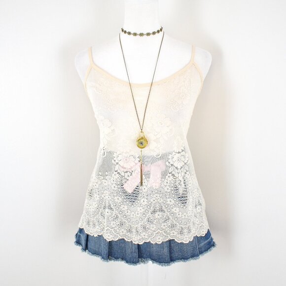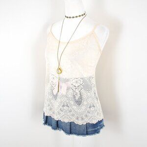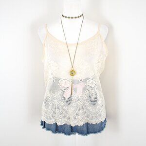 VTG 00s Y2K Coquette Cream Floral Sheer Mesh Lace Sleeveless Cami Top Size Large