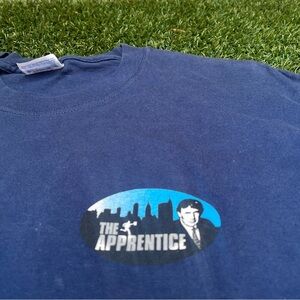 Simple Vintage 00’s / Y2K Donald Trump The Apprentice Promo Tee , dual sided small print on a comfortable navy blue tee . Low key a piece of American history now lol