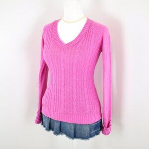 VTG 00s Y2K Limited Too Pink Cable Knit V-Neck Long Sleeve Sweater Size Girls 12