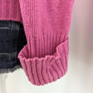 Vintage 2000s Y2K Pink Cable Knit V-Neck Folded Over Long Sleeve Sweater Size Girl's 12