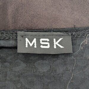 There is a lot of stretch. The brand is MSK. There are no size and material content tags. I personally think it would best fit up to a woman's size XL.