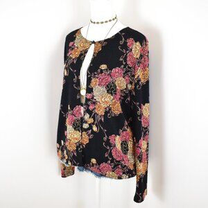 VTG 00s Y2K MSK Black Colorful Gold Floral Single Closure Long Sleeve Cardigan