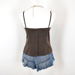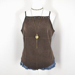 VTG 00s Y2K Wrapper Brown Faux Suede Jeweled & Studded Cami Top Sz Junior's 5/6