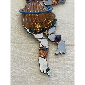 Signed "Liztech 02" , crafted with care using vintage stones, mirrored laminate, craft wire, beads, and charms. Highly detailed.