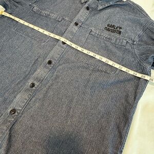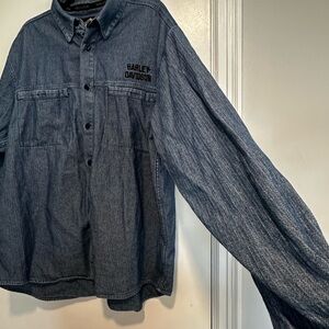 VTG ‘04 Harley Davidson Mens XL Blue Button Up Long Sleeve Denim Embroidered.