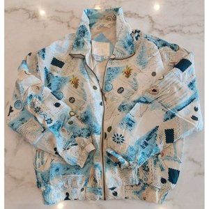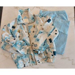 East West Women's Small Track Suit Windbreaker Jacket Pants 100% Silk Floral 80s