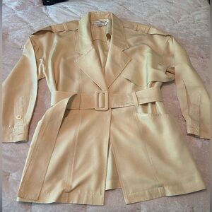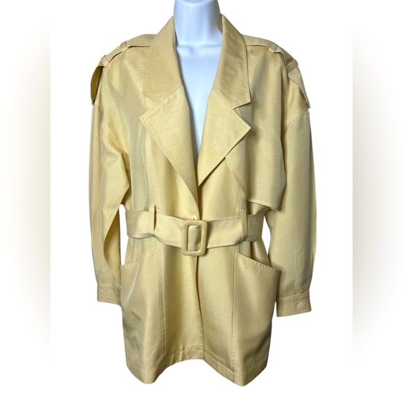 VTG 100% Silk Short Trench Jacket Butter Yellow Women’s Size 8 Lightweight