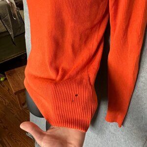 VTG 100% Wool Ribbed Johnny Collar Mock Neck Orange Hiking Base Layer w flaws