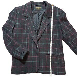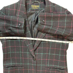 This blazer from Collectible Gold is tailored for a professional look with its plaid pattern and button cuffs. A versatile piece for business attire and formal settings. The jacket combines vintage style with modern elegance, enhancing any wardrobe.