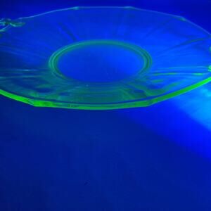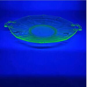 VTG 13" Green Decagon Double Handled Sandwich Plate Depression Uranium Vaseline