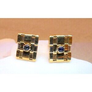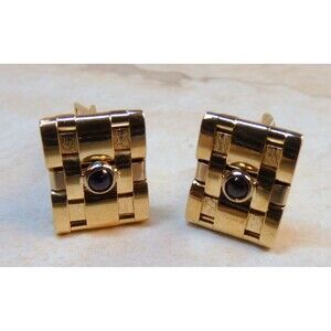 VTG 14Kt Yellow Gold Basket Weave Sapphire Cufflinks Tuxedo Wedding Gift