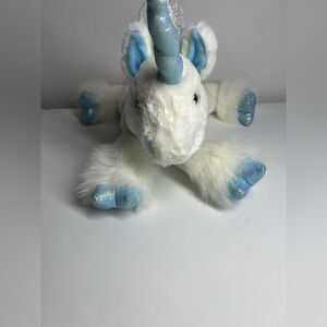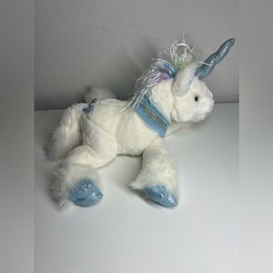 VTG 14” Long Commonwealth Unicorn Plush White Blue Rainbow Yarn Hair Sparkle EUC