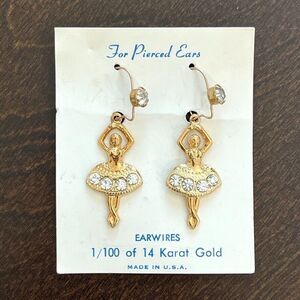 VTG 14k Karat Gold Dancing Ballerinas Zircon Earrings For Pierced Ears Made USA