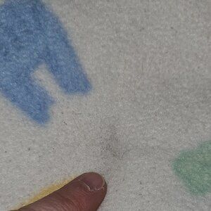 Blanket shows fair amount of normal wear from past wash, has some marks of discoloration as shown in photos, some light pilling. Is being sold exactly as shown, in nice overall condition otherwise. Please view all photos.