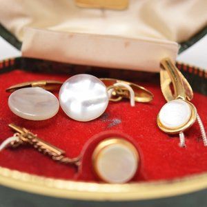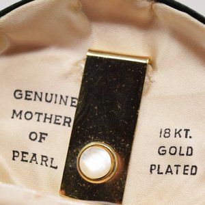 VTG 18 KT Gold Plated Mother of Pearl Cuff Links Money Clip Tie Tack Clasp Set