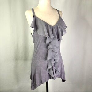 VTG 1.9 One Sept ruffled tank top 90s chiffon slub rayon dusty lavender purple S
