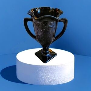 VTG 1937 LE Smith Black Glass Amethyst Trophy Castlecore Vase