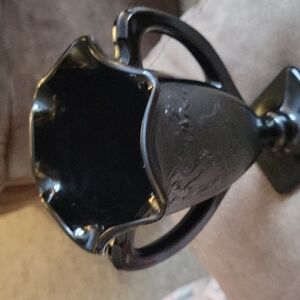 Heavy black depression glass vase. Greek style. Soon to be considered an antique.