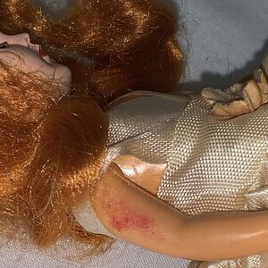 VTG 1940’s COMPOSITE HARD PLASTIC MIX MINIATURE SCARLET SOUTHERN BELLE BRIDE DOLLS. Two estate dolls black hair 8 inches closed sleeping eyes. Red hair 6 inches dark blue eyes with itty bitty lashes intact sleeping eyes close when laying down. Two exquisite ladies in good condition for their age. Original clothing stapled, unmarked. Wrinkled clothing, some discoloration, no tears. Red head appears to be missing her hat and her curls are falling loose at the end on one side. She has faint small colored mark on right upper arm that could be nail polish. No signs of damages all flaws noted to the best of my ability. Specs in photo are dust that I did not attempt to clean as I have no experience. Both could easily be brought back to like new condition for the hobbyist and collector alike. Both estate dolls included. Jointed neck and arms.