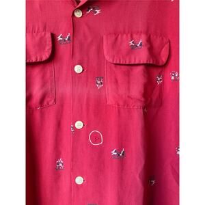 VTG 1940s/50s Holiday Sportswear Red Pilgrim Print Button Up Shirt Size Small