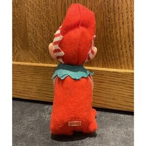 The product is a rare 1950 Christmas Elf figurine from Japan, featuring a knee hugger design with a striped hat and a plastic face. This kitschy collectible is perfect for holiday and seasonal decor, adding a nostalgic touch to your Christmas celebrations. Made of durable plastic, this vintage ornament is a unique addition to any festive collection.
