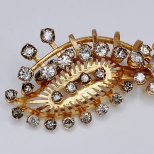 VTG 1950s Brooch Rhinestone Spray Leaf Mid Century Gold Tone Pin Jewelry Sparkly