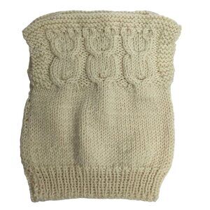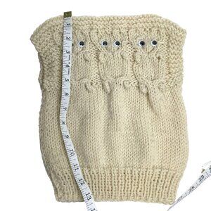 VTG 1950s Handmade Baby Sweater Cream Knit Owls Button Eyes Cotton 3-6M VBC