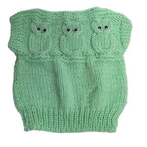 VTG 1950s Handmade Baby Sweater Mint Green Knit Owls Button Eyes Cotton 3-6M VBC
