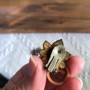 VTG 1950s Matisse Renoir Copper Leaf Enamel Clip On Earrings Signed Fall Maple