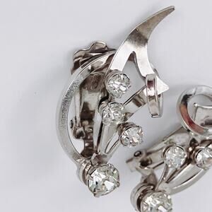 VTG 1950s Mid Century Silver Tone Rhinestone Clip On Earrings