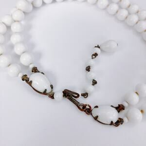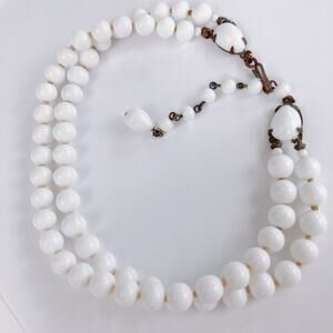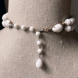 VTG 1950s Milk Glass Double Strand Choker Necklace Japan MCM Jewelry READ