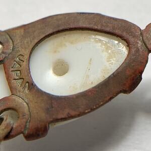 Condition: Fair used / vintage condition. Uniform and stable brown patina on brass findings and chain; significant verdigris (buyer may reduce or remove verdigris with appropriate cleaning). Some yellowing of the string. Despite verdigris on the reverse side, the necklace presents very well and offers a lovely profile. See all images for condition. Ships from a smoke-free environment.
