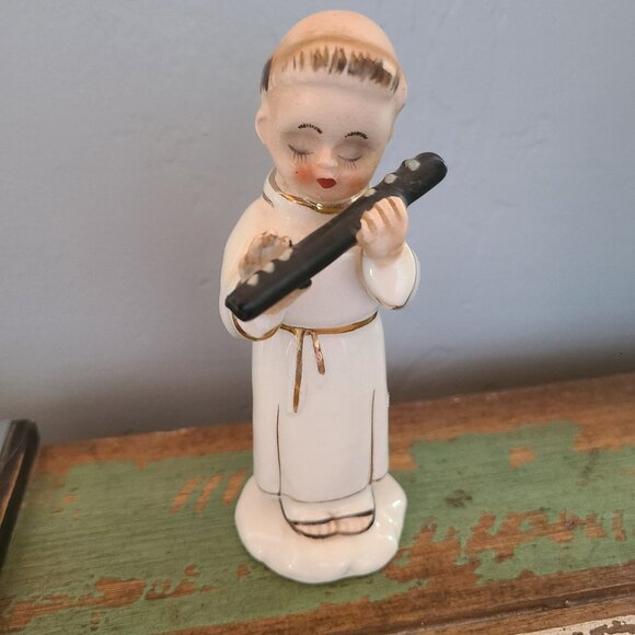 VTG 1950's Monk Playing a Flute Hand Painted Made in Japan 5"