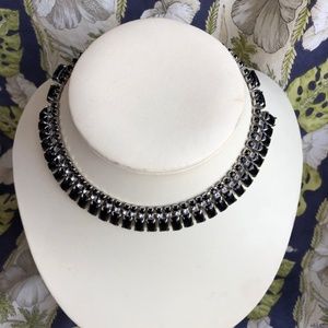 VTG 1950s Rhinestone Black Glass Choker Necklace Up to 13.5 Inches