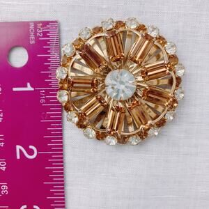 VTG 1950s Rhinestone Domed Layered Swivel Brooch Amber, Clear Stones Gold-Tone