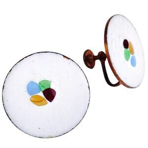 VTG 1950s Screw Back Earrings Enamel Copper Mid Century Modern