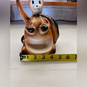 Made of glossy ceramic with a rich brown ombre glaze, this wide-eyed kangaroo is both functional and collectible. Originally a men’s valet/caddy for coins and keys, it also works beautifully as a conversation-starting decor piece.