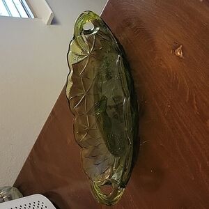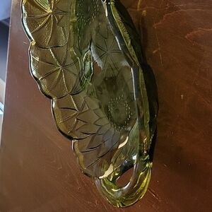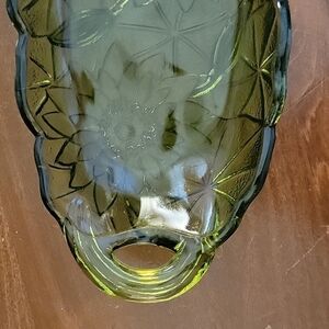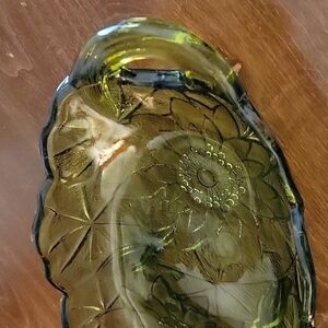 VTG 1960s Avocado Green Indiana Cut Glass Lily Pons Dish