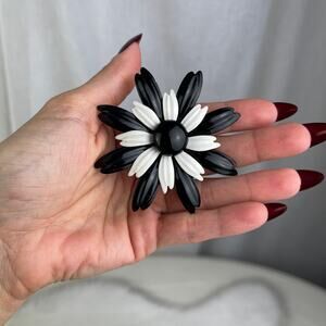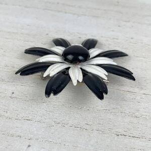 VTG 1960’s Black White Daisy Flower Brooch Pin Metal & Enamel Mod Style 60’s