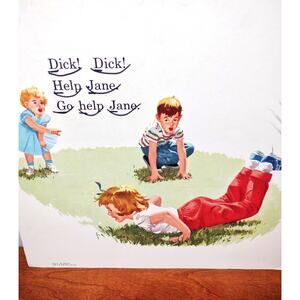 VTG 1960’s Dick Jane and Sally Oversized Teachers Big Book Poster Card 5 9/10