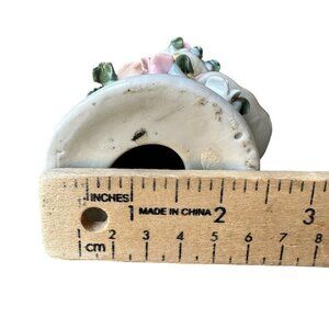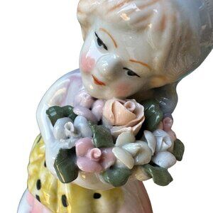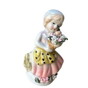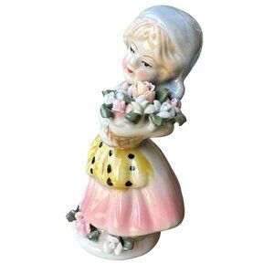 VTG 1960s Figurine 5.5" Blonde Girl Roses Flower Bouquet Glazed Porcelain Dress