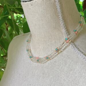 VTG 1960s Mid Century Necklace Multi Strand Pastel Beaded